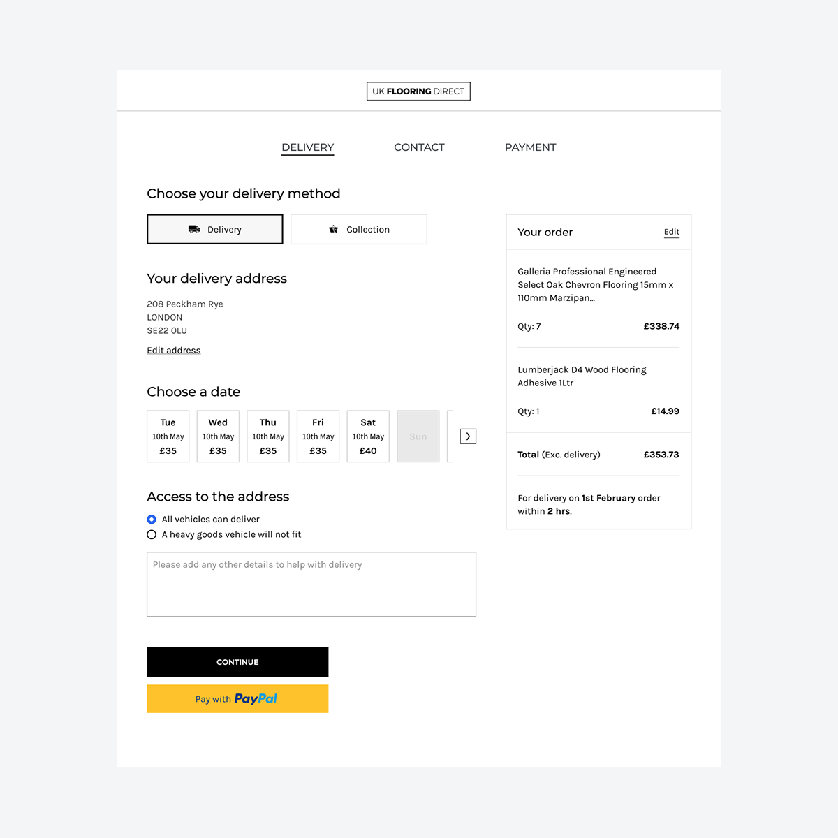 The final solution kept the basket and checkout as separate entities, and the checkout flow became a series of steps, with the delivery mechanism as the first step. This allowed the delivery options and costs to be displayed as quickly as possible and simplified the complete checkout process.