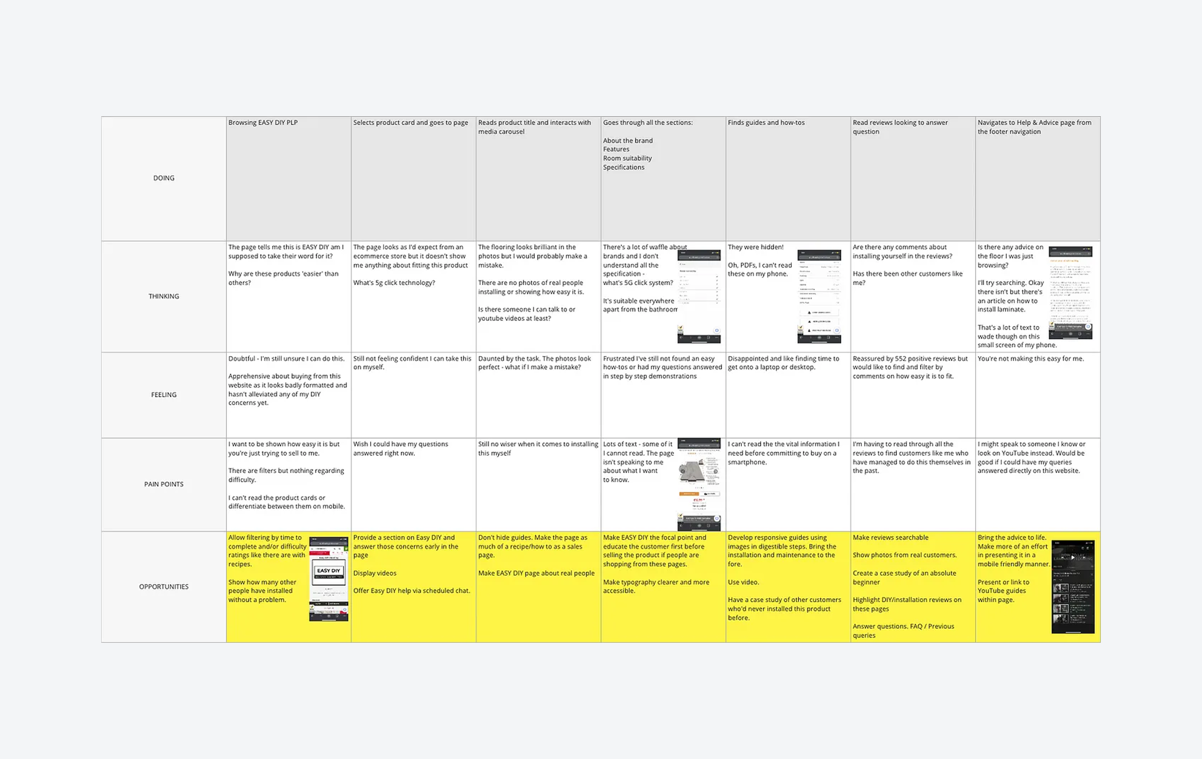 For each empathy map, we created sample and purchase journeys. We then held workshops with the UX/UI and product teams to brainstorm opportunities.