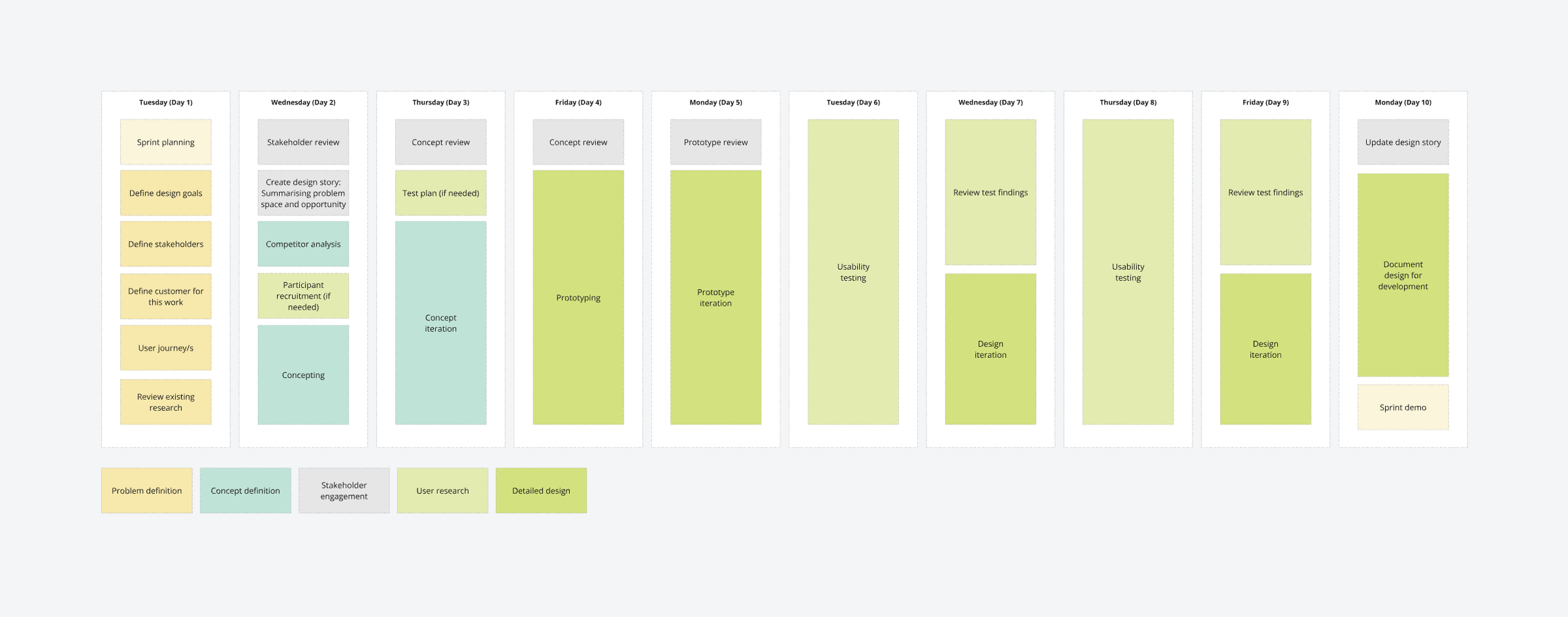 We decided on 2-week design sprints to allow for a more structured approach to defining, concepting, prototyping, reviewing, and user testing.